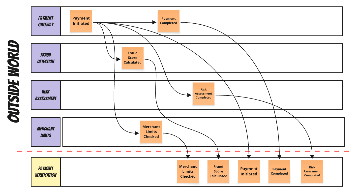 , the payment doesn’t exist. You can’t apply a fraud score to nothing. You realise that when your carefully designed domain model throws exceptions. This should never happen, aye?